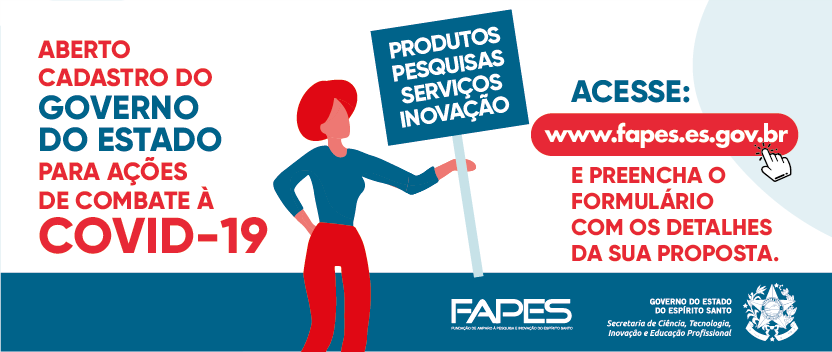 O cadastramento das propostas faz parte das ações desenvolvidas pela administração estadual para controlar a disseminação da doença no Espírito Santo. A Fapes é autarquia vinculada à Secretaria de Estado da Ciência, Tecnologia, Inovação e Educação Profissional (Secti), que participa do Centro Integrado de Comando e Controle de Enfrentamento a Pandemia do Novo Coronavírus (Covid-19).