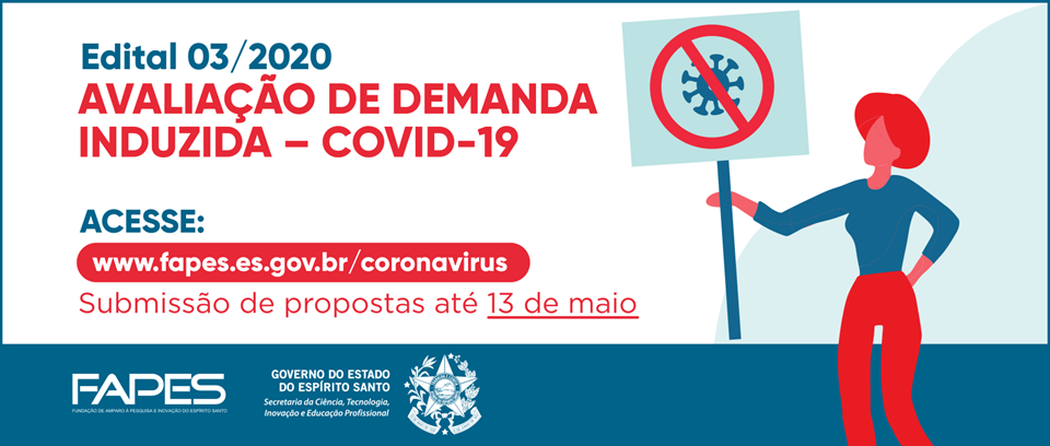 O Edital 03/2020 faz parte das ações desenvolvidas pelo Governo do Espírito Santo para controlar a disseminação da doença no Estado. A Fapes é autarquia vinculada à Secretaria da Ciência, Tecnologia, Inovação e Educação Profissional (Secti), que participa do Centro Integrado de Comando e Controle de Enfrentamento a Pandemia do Novo Coronavírus (Covid-19).