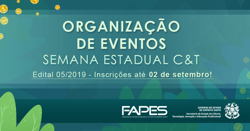 A Fundação de Amparo à Pesquisa e Inovação do Espírito Santo (Fapes) lançou, nesta sexta-feira (02), o Edital 05/2019 para submissão de projetos para a organização de eventos técnico-científicos ou de inovação, de curta duração, durante a 16ª Semana Estadual de Ciência e Tecnologia.