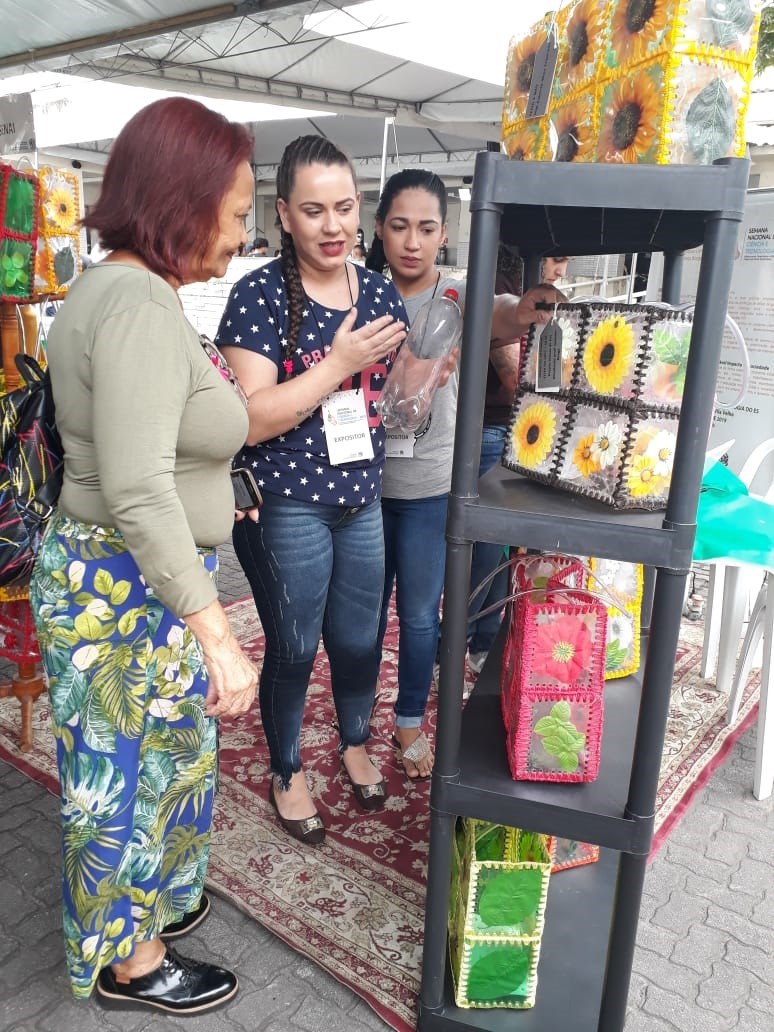 Internas do Centro Prisional Feminino de Cariacica (CPFC) participam da 16ª Semana Estadual de Ciência e Tecnologia, que segue até esta sexta-feira (25), no Centro Estadual de Educação Técnica (CEET) Vasco Coutinho, localizado em Vila Velha. As internas apresentaram na mostra as bolsas feitas de materiais recicláveis, que aprenderam a confeccionar durante um curso de qualificação ofertado pela Secretaria de Estado da Justiça (Sejus) em parceria com o CEET Vasco Coutinho e a Secretaria de Estado da Ciência, Tecnologia, Inovação e Educação Profissional (Secti), por meio do Programa Qualificar ES.