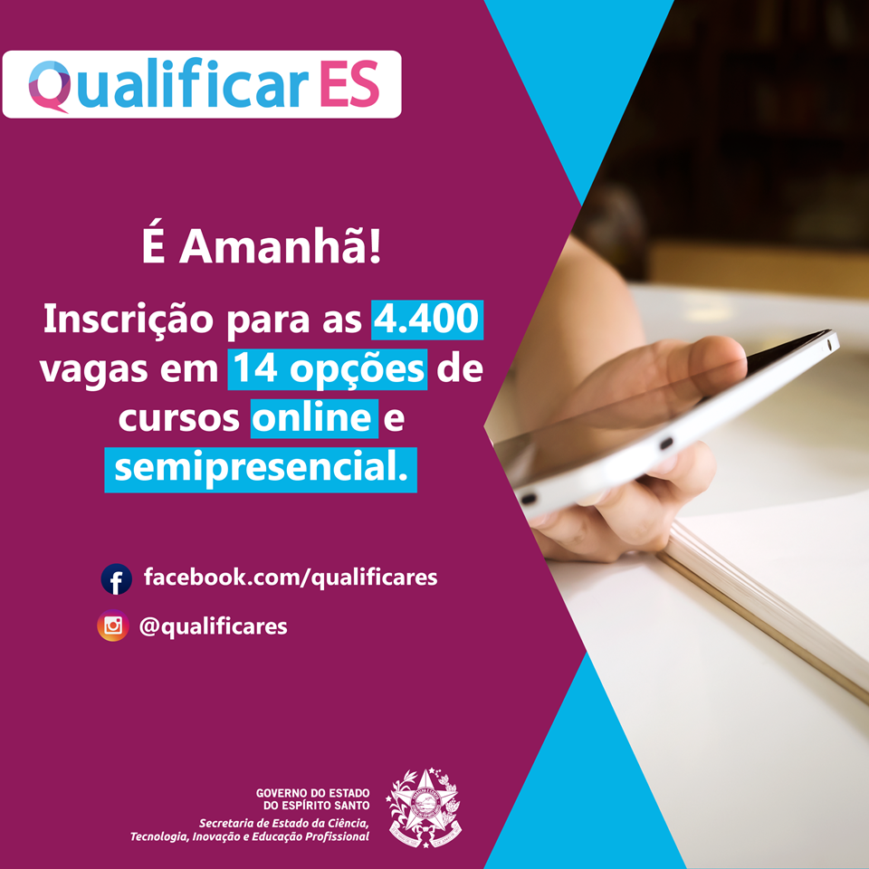 As inscrições começam nessa terça-feira (02) e podem ser realizadas pelo site www.qualificar.es.gov.br