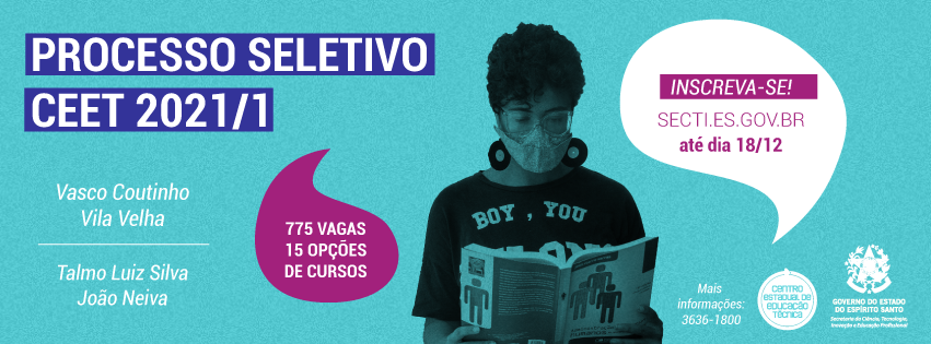 A Secretaria da Ciência, Tecnologia, Inovação e Educação Profissional (Secti) lança, nesta sexta-feira (11), o Edital 031/2020, com 775 vagas para 15 cursos técnicos gratuitos. Trata-se do Processo Seletivo para os Centros Estaduais de Educação Técnica (CEETs) Vasco Coutinho, em Vila Velha, e Talmo Luiz Silva, em João Neiva. O edital é referente ao primeiro semestre de 2021.