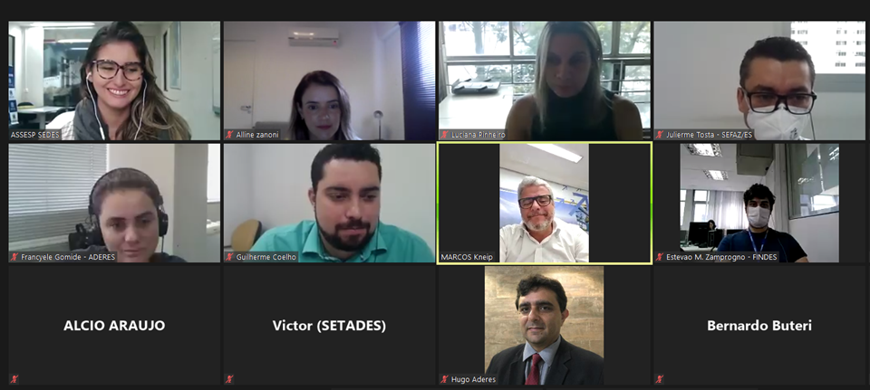 Entre os presentes à reunião estiveram o coordenador suplente da Secretaria de Desenvolvimento, Guilherme Coelho; Marcos Américo Villas Bôas, da Escola de Serviço Público do Espírito Santo (Esesp); Aline Zanoni Batista e Bernardo Buteri, do Serviço Brasileiro de Apoio às Micro e Pequenas Empresas (Sebrae); Julierme Gomes Tosta e Andressa Buss, da Secretaria da Fazenda (Sefaz); Estevão Mascarenhas Zamprogno, da Federação das Indústrias do Espírito Santo (Findes); Francyele Gomide e Hugo Tóffoli, da Agência de Desenvolvimento das Micro e Pequenas Empresas e do Empreendedorismo (Aderes); Alcio de Araujo, do Banco do Estado do Espírito Santo (Banestes); Victor Nunes Toscano, da Secretaria de Trabalho, Assistência e Desenvolvimento Social (Setades), e Luciana Lopes Pinheiro, da Secretaria de Gestão e Recursos Humanos (Seger).