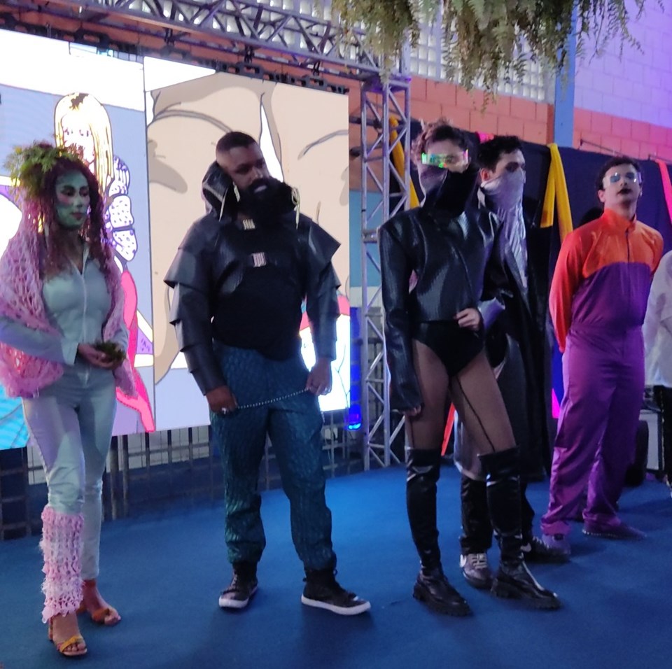 Entre as apresentações, o reino animado de João Bananeira, criado pelos próprios alunos para contar de maneira lúdica a história capixaba, subirá ao palco com seus movimentos mecânicos. Também, moda e realidade virtual vão se misturar em uma história em quadrinho que, se passa em um futuro cyberpunk com dois universos que se colidem: a moda toda em preto e metálico com a moda colorida. E, como o futuro cyber não deve ser pensado sem sustentabilidade, a moda upcycling será exibida para mostrar que é possível reutilizar roupas e tecidos, pensando ecologicamente a melhora da economia circular capixaba. Por fim, vestidos de alta elegância serão exibidos, representando a moda praia.