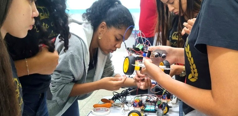Em seguida, entram os ensinamentos de programação, em que as alunas passam a determinar o que o carrinho-robô deverá fazer, ou seja, “dizerem” para a máquina, e o que deve fazer (em que direção andará, como desviar de obstáculos etc.). Cumpridas essas etapas, as alunas aprendem ainda a conferir determinada autonomia ao robô, de forma que este defina como se comportará por conta própria e a partir de um sorteio com base na programação pré-determinada, diante de um obstáculo.