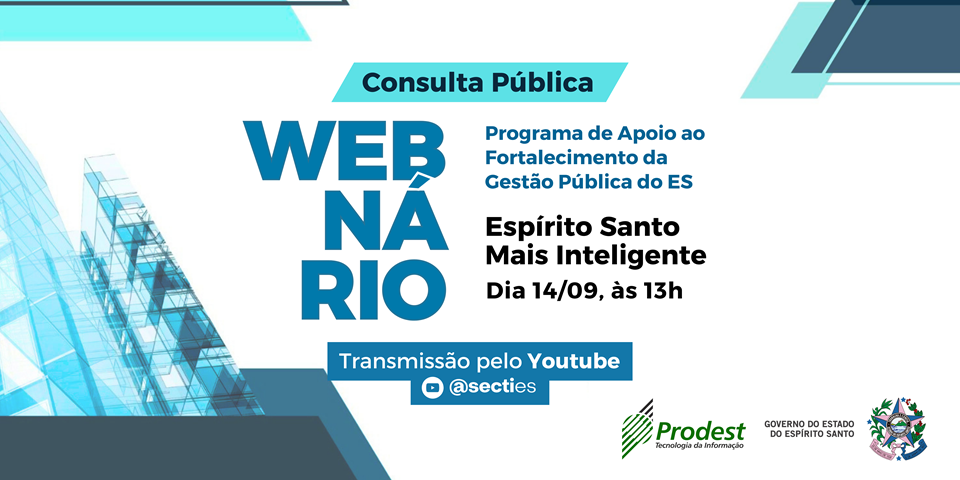 Webinário de Consulta Pública do Programa Espírito Santo Mais Inteligente acontece nesta quinta-feira (14)