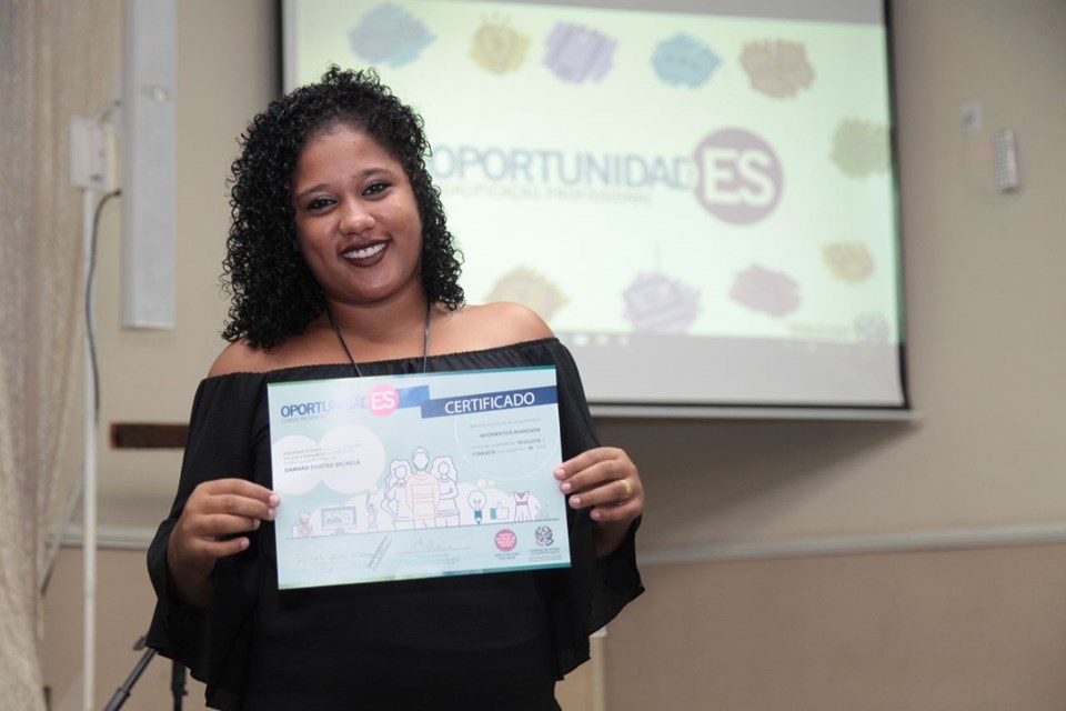 Novos costureiros, designers de sobrancelhas, maquiadores, porteiros e recepcionistas foram alguns dos novos profissionais formados pelo OportunidadES. Ao todo, nove profissões foram lecionadas pelo projeto aos 215 formandos da região. Entre eles estava Samara Dantas Micaela, de 18 anos, que concluiu o oitavo curso no OportunidadES.