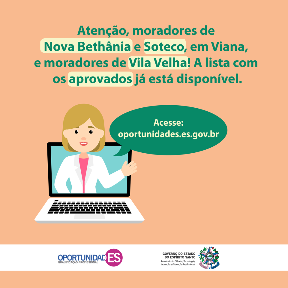 Atenção, moradores de Viana e Vila Velha: saiu a lista com os aprovados nas ofertas do OportunidadES