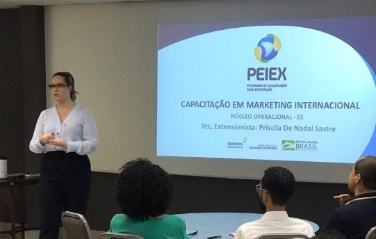 O Núcleo Operacional do Programa de Qualificação para Exportação (PEIEX) no Espírito Santo, iniciativa da Agência Brasileira de Promoção de Exportações e Investimentos (Apex-Brasil), em parceria com a Secretaria de Desenvolvimento (Sedes) e a Fundação de Amparo à Pesquisa e Inovação do Espírito Santo (Fapes), realizou, na última sexta-feira (08), a oficina “Marketing Internacional”.