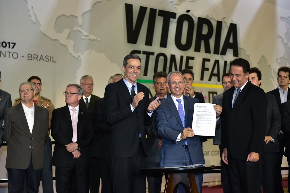 Durante a cerimônia de abertura oficial do evento, o governador Paulo Hartung assinou decreto que amplia para aproximadamente 90 dias o prazo de recolhimento do ICMS de operações realizadas durante a Vitória Stone Fair e a Cachoeiro Stone Fair.