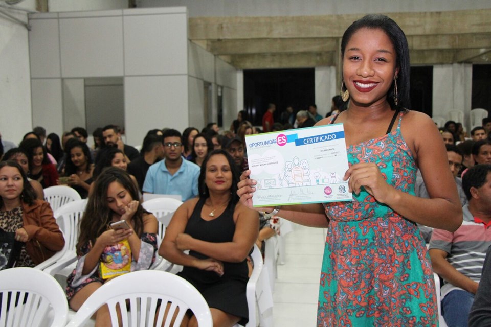 O início de uma carreira de sucesso. Este foi o sentimento e desejo para as turmas formandas do bairro Rosa da Penha, em Cariacica. Adriany Rodrigues, de 19 anos, soube dos cursos pelas redes sociais e recebeu o certificado de recepcionista. Depois de concluir o ensino médio ela parou de estudar e só retornou com o projeto OportunidadES. Está desempregada há anos e escolheu o curso de recepcionista para conseguir um emprego formal. “Achei o curso muito bom. Aprendi muita coisa e já preparei meu currículo com a conclusão do curso. Consegui até uma entrevista na área de recepção. Estou muito feliz e animada com minha nova profissão”, comentou a formanda.