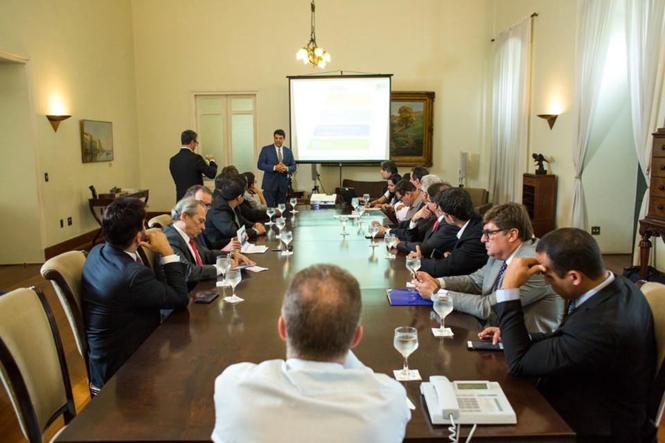 O governador Renato Casagrande analisou, nesta sexta-feira (08), os termos do acordo a ser firmado entre a Agência Nacional do Petróleo (ANP) e a Petrobras, visando a unificação dos campos de petróleo e gás no Parque das Baleias. Participaram da reunião os secretários de Desenvolvimento, Heber Resende e da Fazenda, Rogélio Pegoretti, o procurador geral do Estado, Rodrigo de Paula, os prefeitos de Marataízes, Piúma e Itapemirim, além dos representantes da ANP.