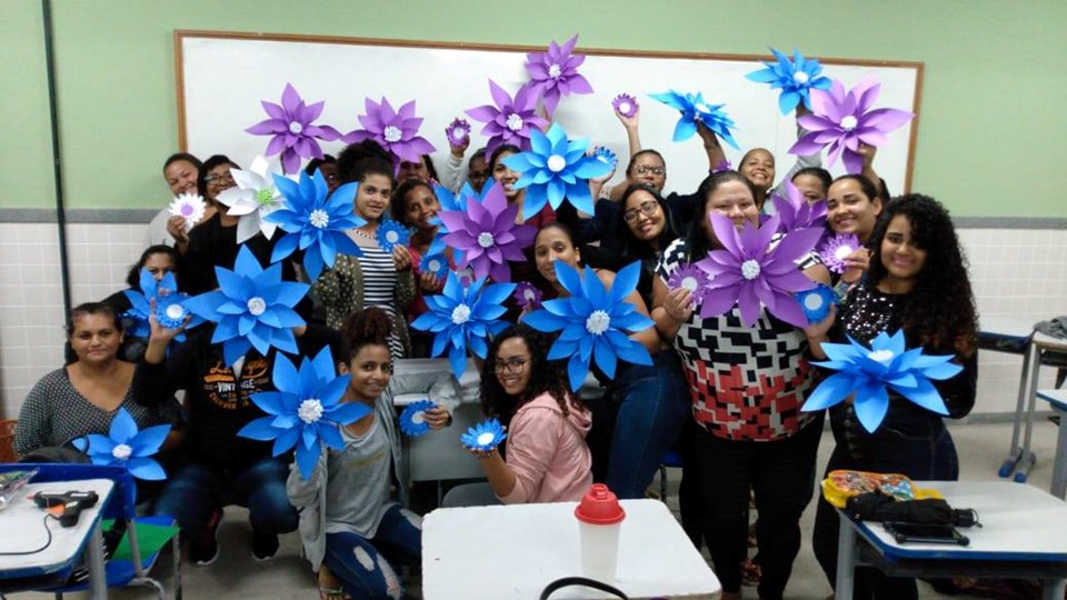 Turma do curso de Decoração de Festas de Central Carapina, na Serra, em aula prática.