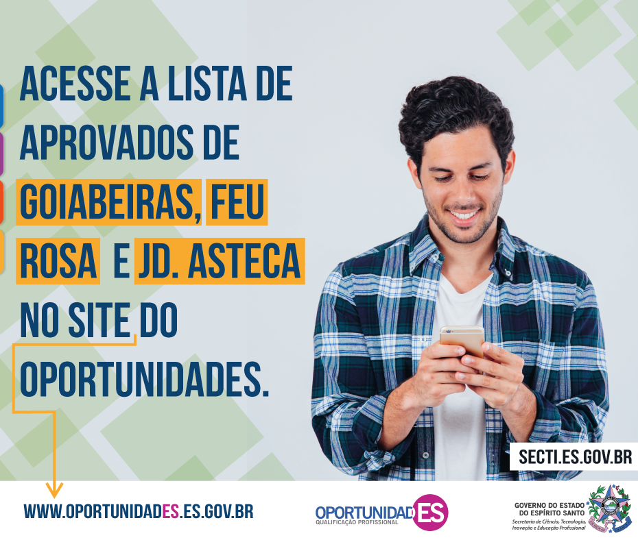 Os moradores de Vitória, Feu Rosa, na Serra e Jardim Asteca, em Vila Velha, que se inscreveram no Projeto OportunidadES já podem acessar a lista de aprovados no site www.oportunidades.es.gov.br. Ou se preferirem no link abaixo: