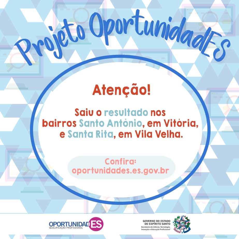 As listas com os nomes dos aprovados nos cursos profissionalizantes oferecidos pela Secretaria de Estado da Ciência, Tecnologia, Inovação e Educação Profissional (Secti) – por meio do Projeto OportunidadES – já estão disponíveis para acesso.