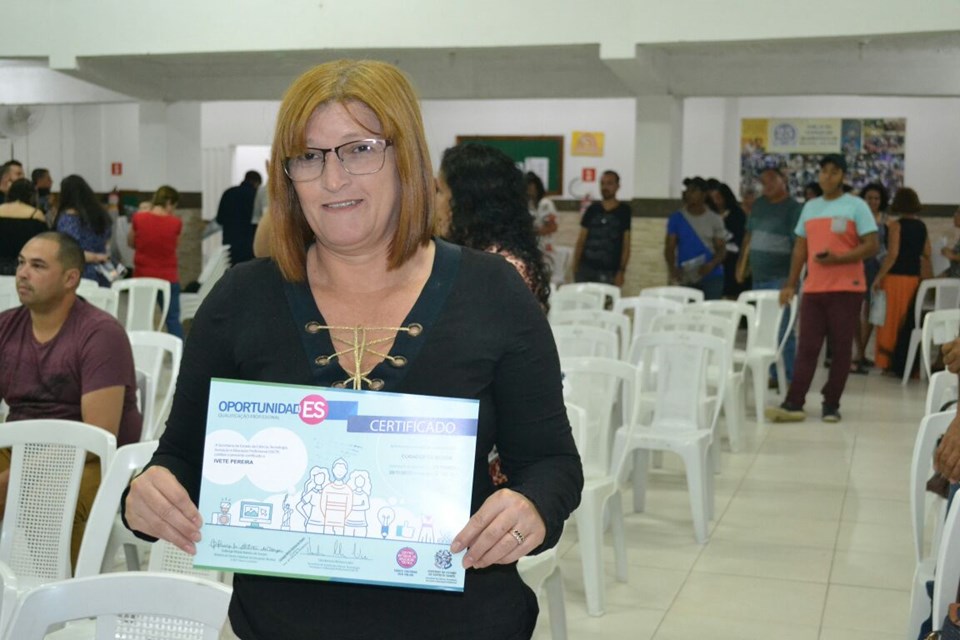 A cerimônia contou com a presença do secretário de Estado da Ciência, Tecnologia, Inovação e Educação Profissional (Secti), Vandinho Leite, que iniciou seu discurso parabenizando os alunos pela conquista e agradecendo a todos os envolvidos. “O nosso objetivo inicial de recolocar o cidadão capixaba no mercado de trabalho está sendo alcançado. Hoje eu ouvi belíssimas histórias de que algumas pessoas que fizeram os cursos estão pondo em prática o que aprenderam e voltaram a trabalhar. É isso que o OportunidadES quer: trazer uma nova chance para a população do Estado”, destacou o secretário.