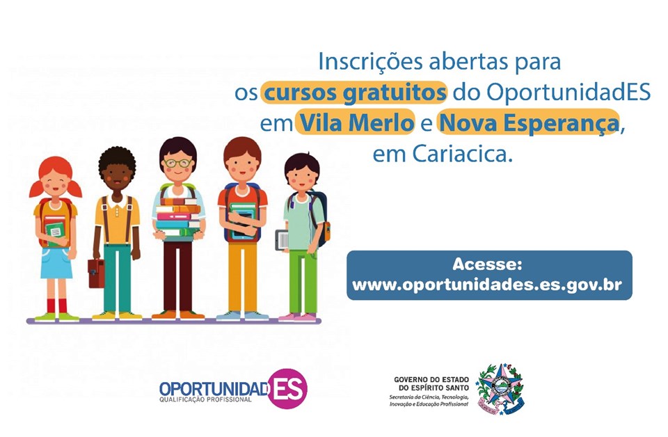Atenção, moradores dos bairros Vila Merlo e Nova Esperança, em Cariacica. Começam nesta terça-feira (20) as inscrições para os cursos de qualificação profissional gratuitos do Projeto OportunidadES. Estão abertas 600 vagas para os dois bairros. Ao todo, 20 opções de cursos estão disponíveis e as inscrições seguem até o próximo domingo (25). Os residentes desses dois bairros têm prioridade nesta seleção.