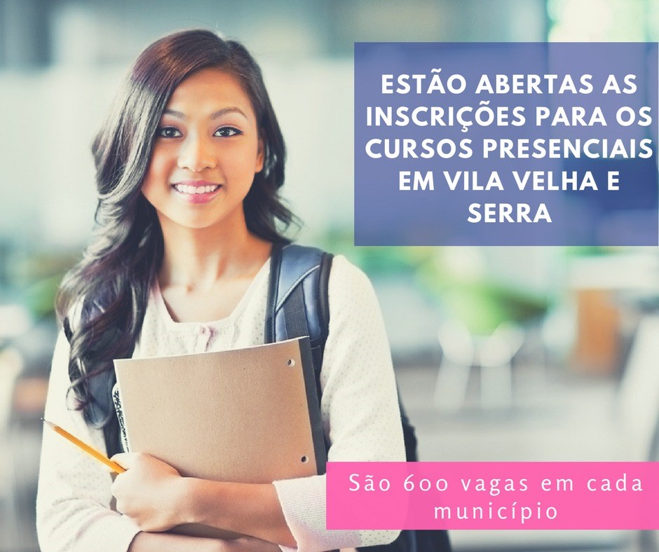 No bairro Vale Encantado, em Vila Velha, forma ofertadas 300 vagas distribuídas em dez opções de cursos. As aulas serão aplicadas em dois locais: na Escola Municipal de Ensino Fundamental (EMEF) Joffre Fraga e na Igreja Batista Renovada do Vale. Confira na tabela abaixo os cursos oferecidos no bairro: