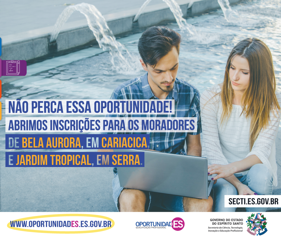 Se você é morador de Cariacica ou Serra e está em busca de qualificação profissional certificada essa é a sua chance. O projeto OportunidadES abriu nesta terça-feira (10) 600 vagas em cursos gratuitos para os moradores de Bela Aurora, em Cariacica, e Jardim Tropical, na Serra. Os interessados devem acessar o site www.oportunidades.es.gov.br para se inscrever. As inscrições terminam no próximo domingo (15).