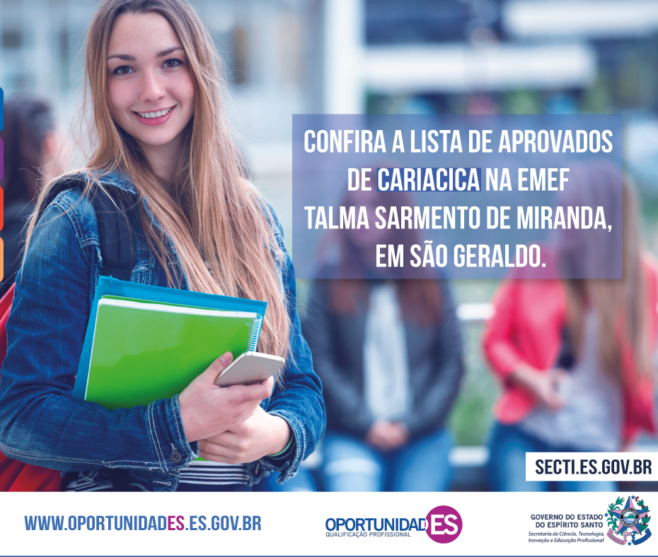 Se você é morador de Cariacica e se inscreveu em dos 17 cursos do OportunidadES ofertados no município, já pode acessar a lista de aprovados da cidade no site www.oportunidades.es.gov.br, ou no link abaixo: