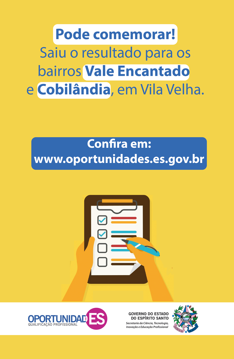 OportunidadES divulga lista de aprovados em Vila Velha