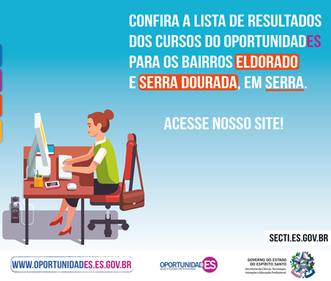Já estão disponíveis as listas de aprovados das ofertas de cursos de qualificação profissional gratuitos do projeto OportunidadES em Eldorado e Serra Dourada II, na Serra. Os classificados podem ter acesso aos resultados no site www.oportunidades.es.gov.br ou nos links abaixo: