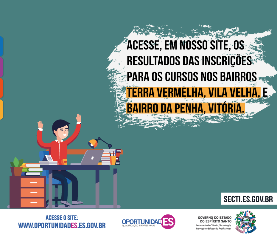 OportunidadES: lista de aprovados disponível das ofertas de Bairro da Penha, em Vitória, e Jabaeté, em Vila Velha
