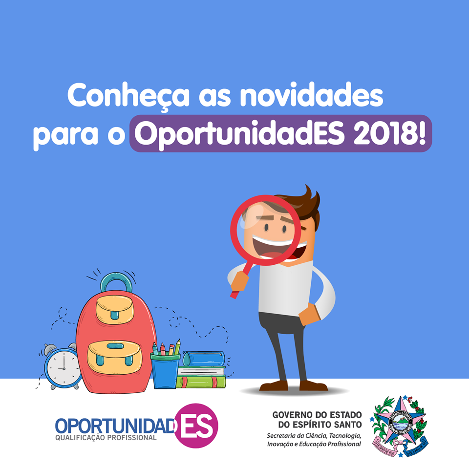 “O OportunidadES em 2017 foi um sucesso e estamos trabalhando para ampliar seu alcance em 2018. Vamos oferecer à população capixaba mais opções de cursos em novas áreas e cursos semipresenciais para profissionais com atuação comprovada na educação, além dos cursos a distância que atendem toda população do Estado. Queremos facilitar a vida do cidadão levando ensino rápido de qualidade que fomente a economia criativa”, destacou o secretário de Estado da Ciência, Tecnologia, Inovação e Educação Profissional (Secti), Vandinho Leite.