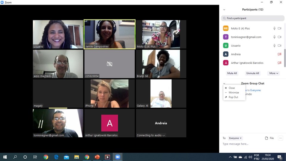 “Tenho aproximadamente 30 alunos. Estamos utilizando as ferramentas on-line e enviando links de filmes para eles assistirem. Também envio sempre mensagens nos grupos de Whatsapp para motivá-los e não perder o contato”, contou Sílvio Renato Barbosa.