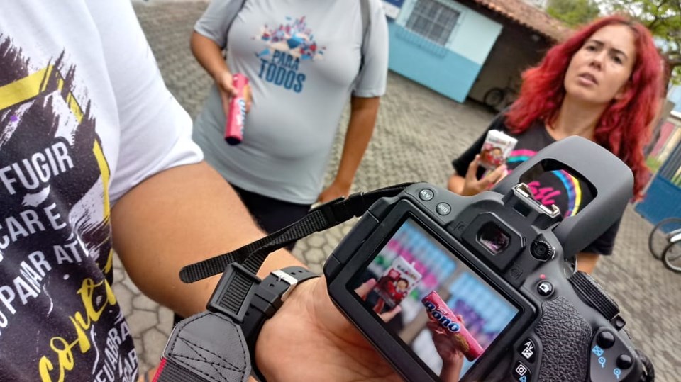 Alunos da turma de Fotografia de Novo Horizonte, na Serra, em aula prática.
