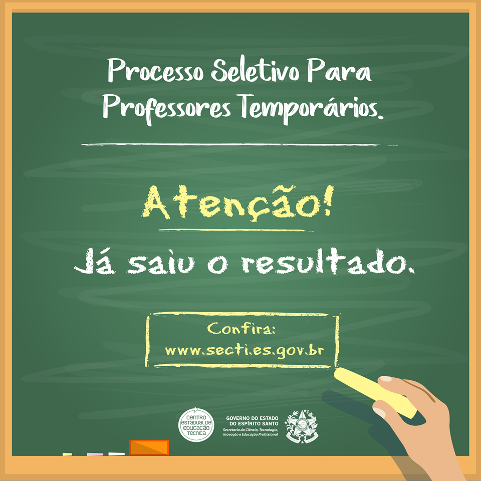 Acabou a ansiedade para os 4.675 professores que se inscreveram no Processo Seletivo de Professores Temporários da Secretaria de Estado da Ciência, Tecnologia, Inovação e Educação Profissional (Secti). A secretaria divulgou nesta sexta-feira (04) a classificação dos candidatos. Para conferir a lista basta acessar o site www.seleção.es.gov.br ou clicar aqui.