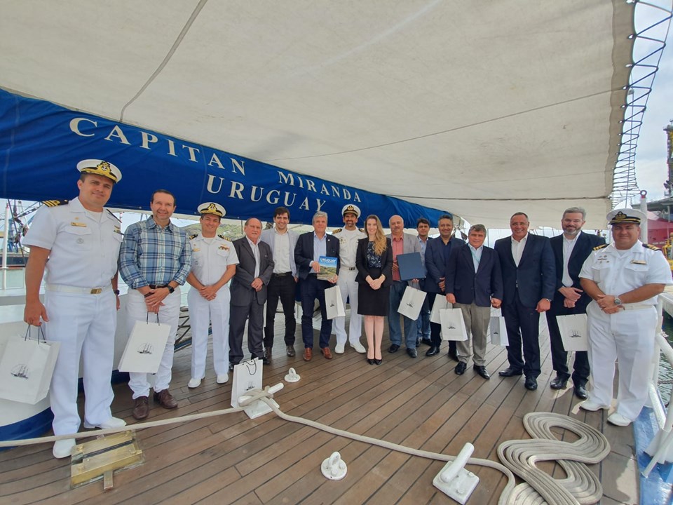 O secretário de Desenvolvimento, Marcos Kneip, participou de um almoço com a cônsul do Uruguai, Maria Noel Reyes, nessa quinta-feira (23). O encontro foi realizado no Navio de Aprendiz da Marinha do Uruguai atracado no Porto de Vitória. O subsecretário de Atração de Investimentos e Negócios Internacionais, Gabriel Feitosa, acompanhou o gestor da pasta no encontro.